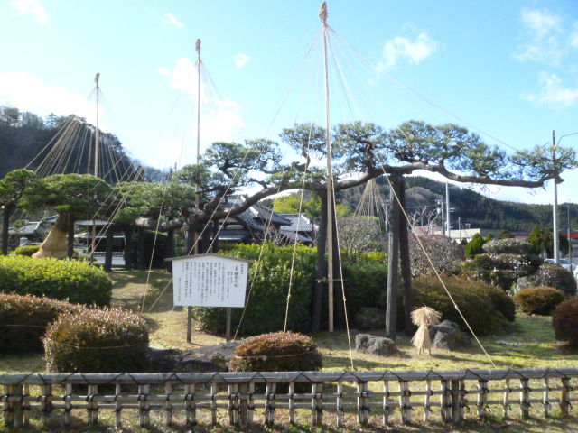 入り口にある伊達家ゆかりの臥龍松には、雪吊りが施されてありました。