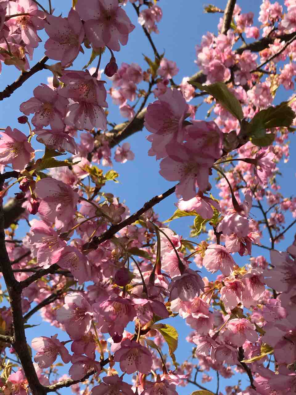 でも満開でね、桃色の花びらが青空に映えてとっても綺麗でした。