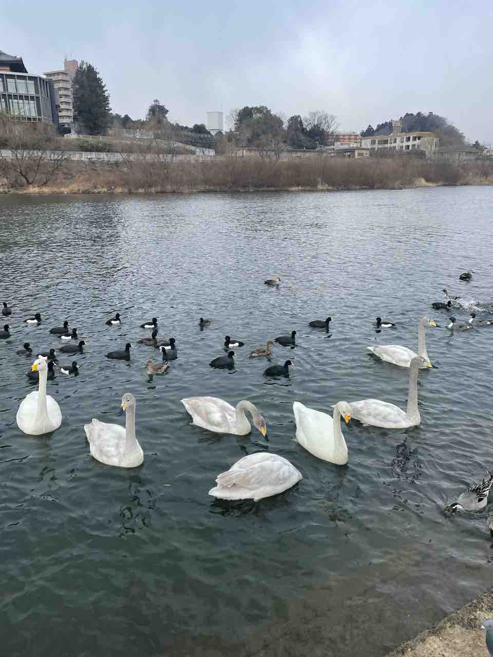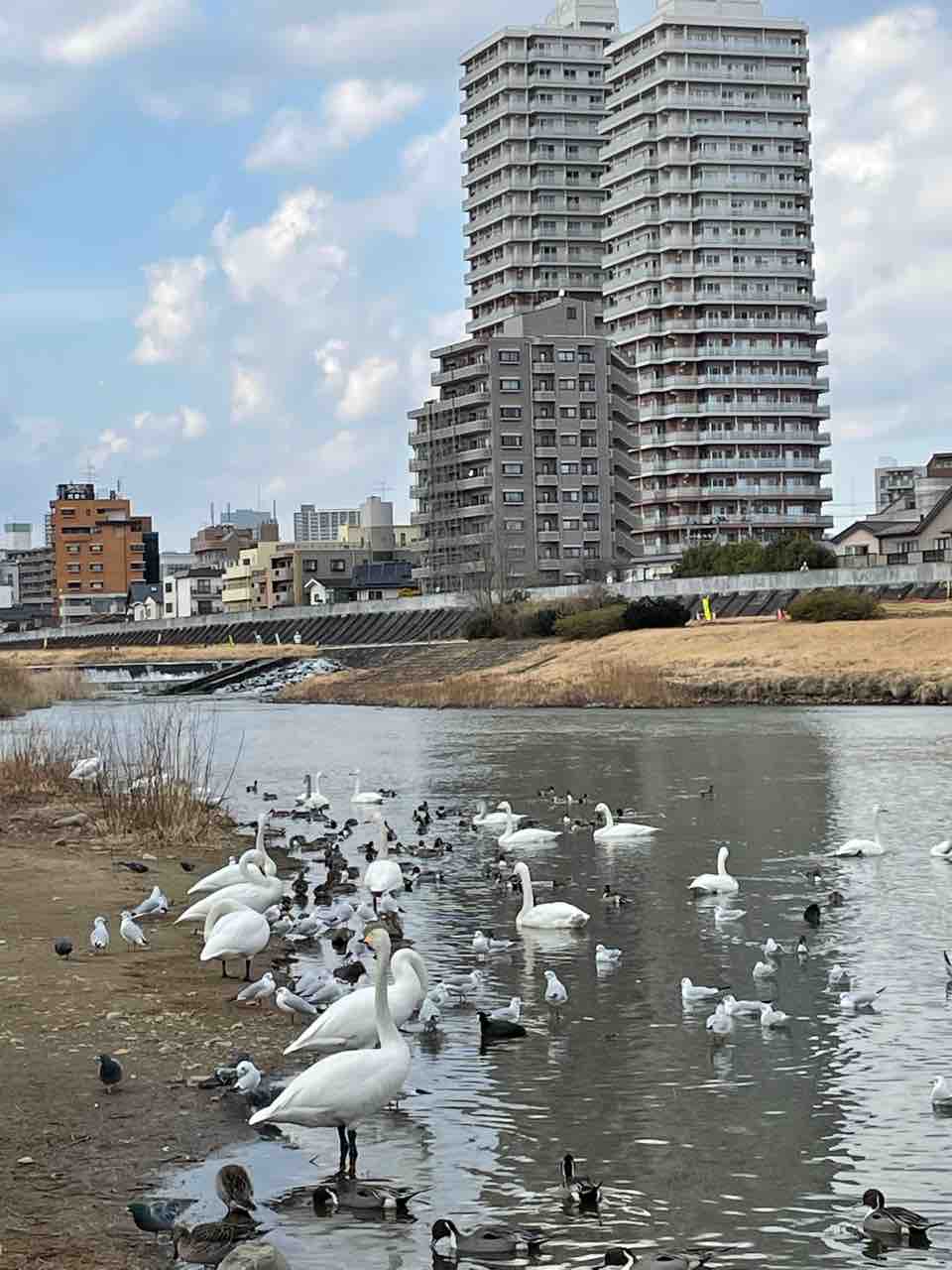 今年の冬は近くを流れる広瀬川に渡来している白鳥やカモに古米の玄米をやりに通ってます