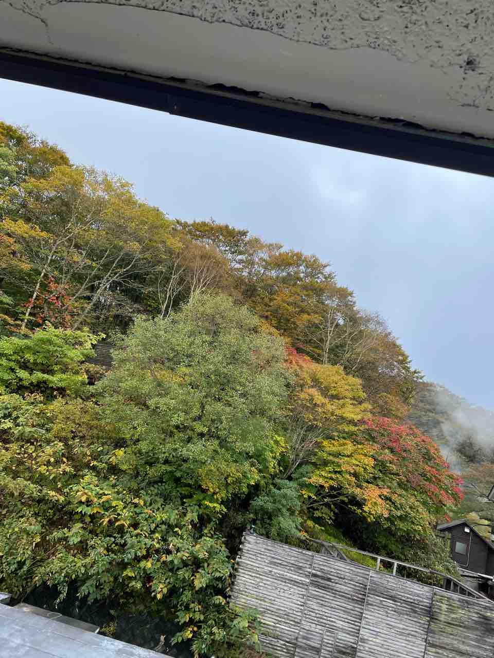 それでも宿泊当日はお部屋から裏山が見えて紅葉が始まっていました